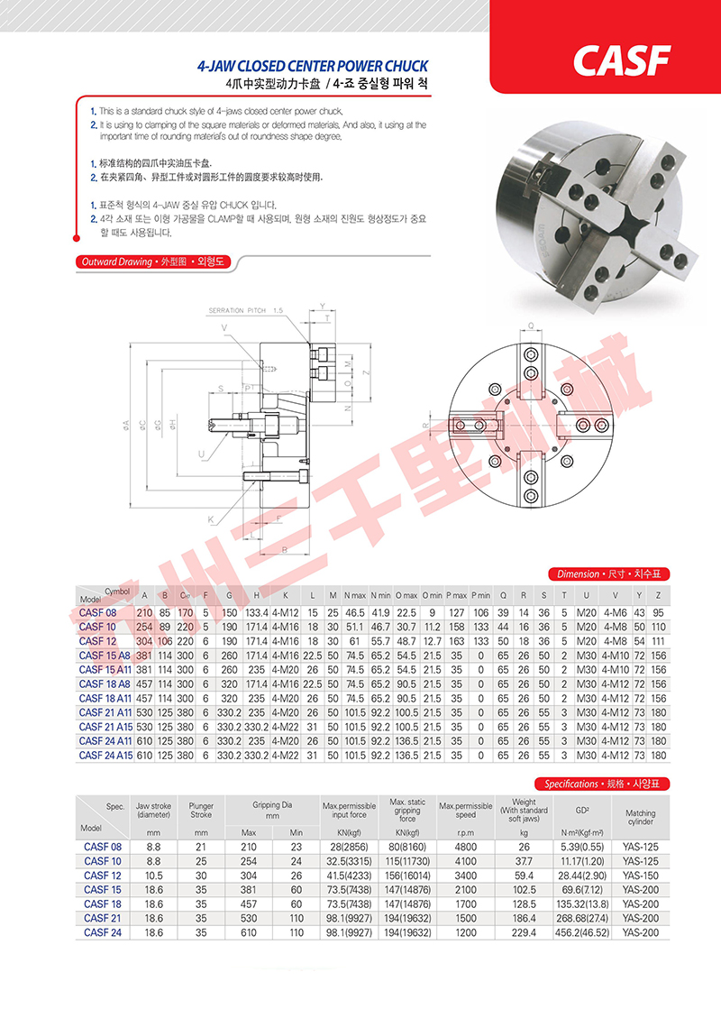 韩国瑞岩seoam四爪中实卡盘CASF