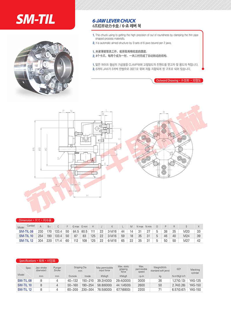 韩国瑞岩seoam六爪杠杆动力卡盘SM-TIL