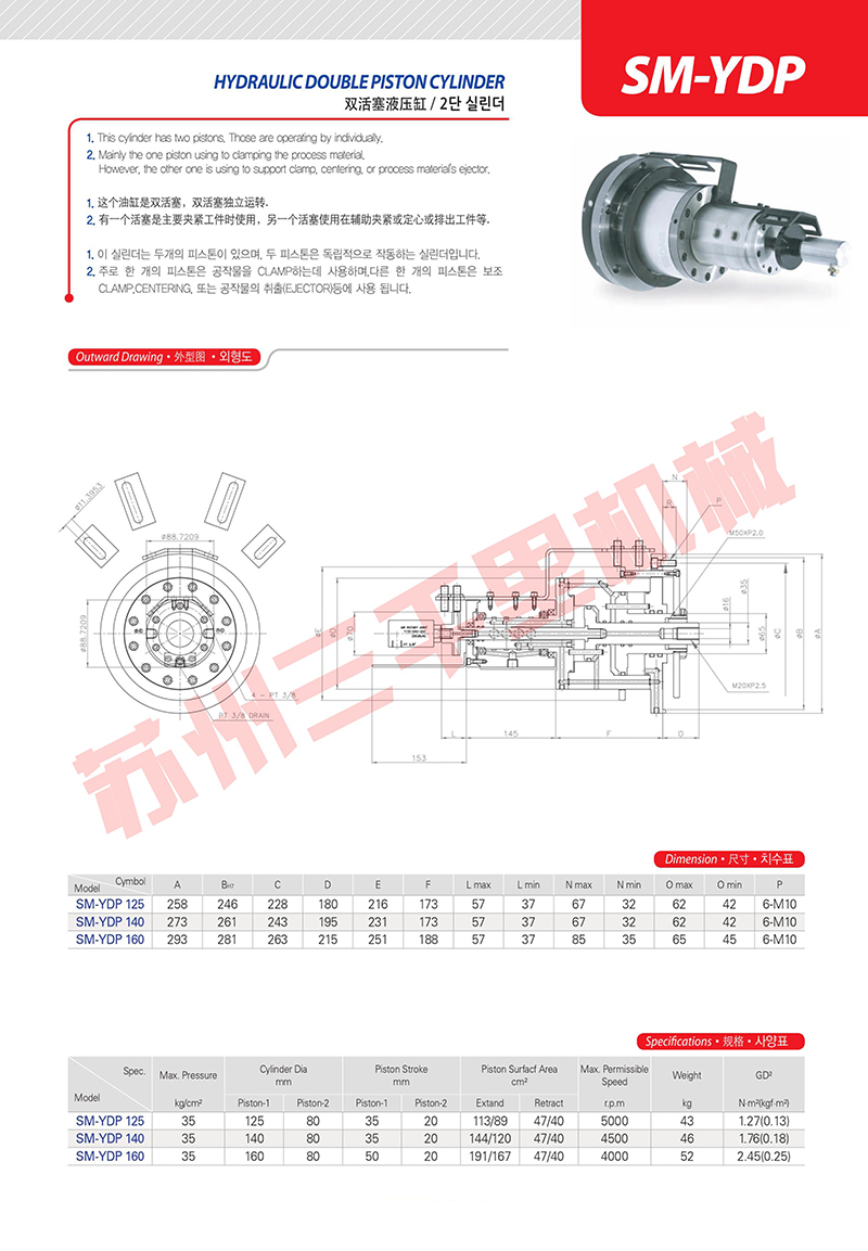 韩国瑞岩seoam双活塞液油缸SM-YDP