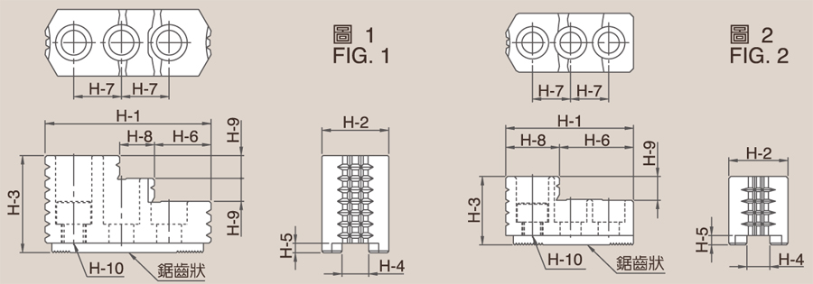 | 型式 / 規格 | H-1 | H-2 | H-3 | H-4 | H-5 | H-6 | H-7 | H-8 | H-9 | H-10 | 鋸齒狀節距 |